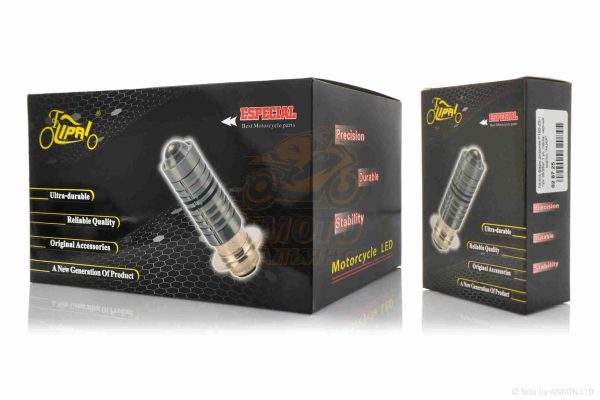 Лампа фари діодна P15D-25-1 12V 35/35W 1 вус, лінза, чорний корпус “LIPAI”