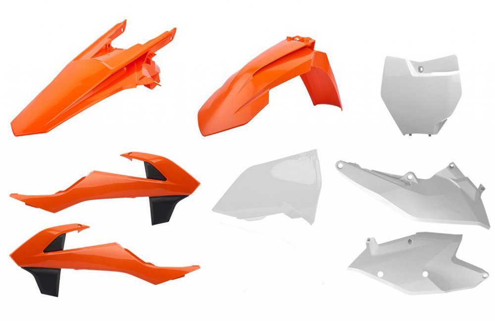 * Мото пластик Polisport MX Complete Kit включает в себя: переднее крыло, заднее крыло, номерную табличку, защиту вилки, боковые панели и люверсы радиатора.